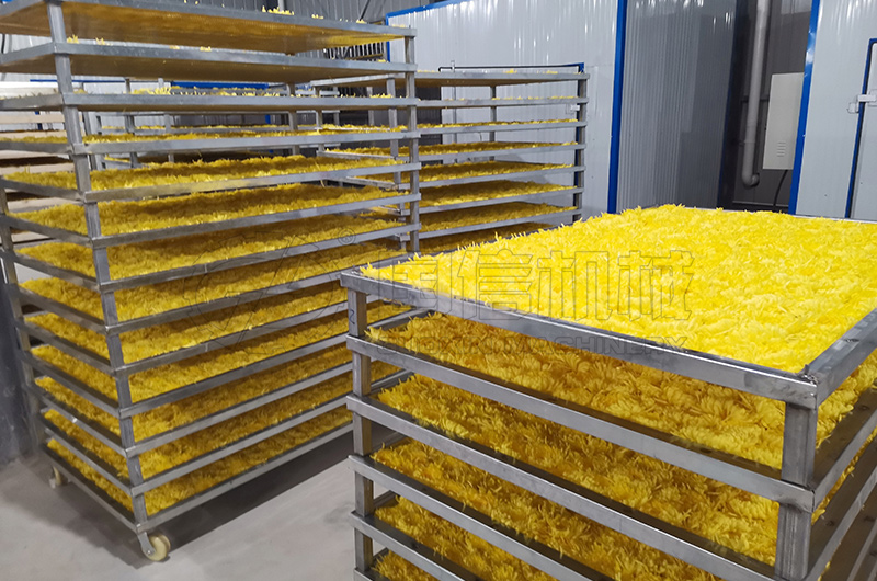 導(dǎo)讀:鮮菊花含水率我們按80%,要烘干到含水率13%,通過(guò)公式:干花重量=濕花重量×(1-烘干前含水率)/(1-烘干后含水率)可以計(jì)算出一百斤藥用菊花烘干后剩23斤左右,而鮮菊花4.35斤烘干后為一斤干菊花。
