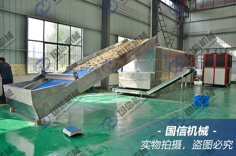 使用國信蔬菜專用網帶式烘干機干燥過的蔬菜色澤好,破損率低,收益高??筛鶕a需要對網速、溫度和濕度進行調節(jié),以滿足對不同含水率、不同品種的蔬菜進行烘干處理。