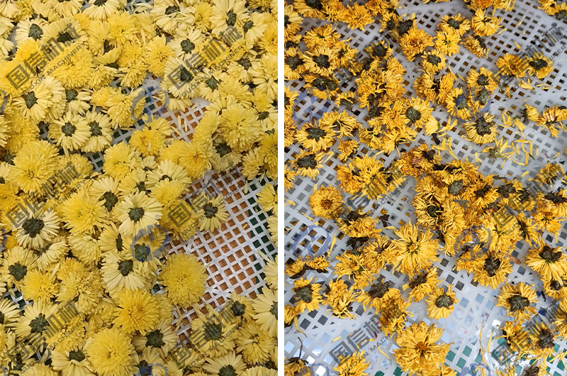 烘干前 烘干后 目前,我們國信廠家的空氣能菊花烘干房,已經在陜西、、甘肅、山東、河南、安徽、貴州、云南等等近百個地區(qū)實際使用,配置的熱源系統(tǒng)采用的是目前市場上主流的裝置—空氣能熱泵。這是一種綠色環(huán)保型熱源,在為菊花烘干房提供熱量時,不會產生任何的污染物和有害物質,而且一度電能即可產生3.8千瓦時的熱能,非常的高效節(jié)能。部分地區(qū)還有相關的購機補貼政策,已經成為了菊花烘干的理想設備。國信廠家生產的空氣能菊花烘干房,實現了各農產品烘干、脫水蔬菜加工、中藥材干燥、花茶制做、糧食烘干、肉類和魚類干燥、食品烘干、木材烘干、紙管烘干等,我們在為用戶提供烘干設備的同時,還提供相關的整體烘干解決方案、烘干技術、烘干工藝等服務支持,如果您在進行菊花烘干方面有任何問題,可以隨時與我們取得聯(lián)系,公司常年備有樣機,歡迎廣大用戶蒞臨考察,洽談合作。