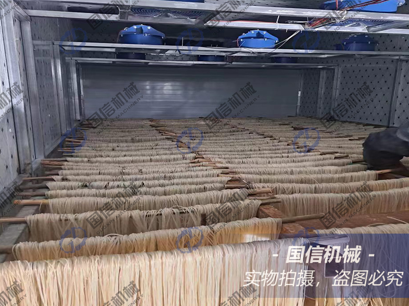 2、 將過(guò)夜冷凍后的紅薯粉條推入烘干房中,開(kāi)始進(jìn)行升溫排濕干燥;