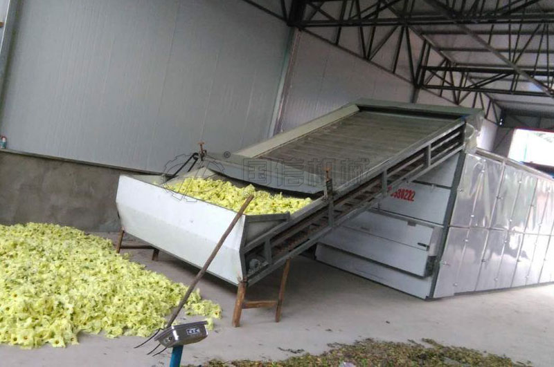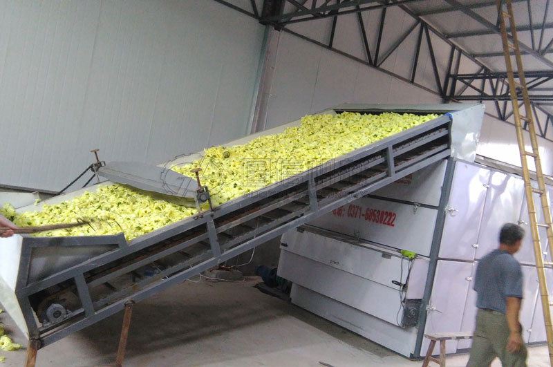 經(jīng)過三天的辛苦忙碌,金花葵烘干機終于安裝調(diào)試好了,張先生和售后工程師們馬上進行了第一爐的金花葵烘干測試。經(jīng)過幾個小時的烘干,成品金花葵新鮮出爐,只見出料口的金花葵干度均勻,色澤淺黃,微帶深色,聞起來有一股怡人的清香,烘干效果非常好,張先生表示對這套網(wǎng)帶式金花葵烘干設(shè)備的烘干效果非常滿意。