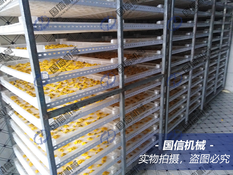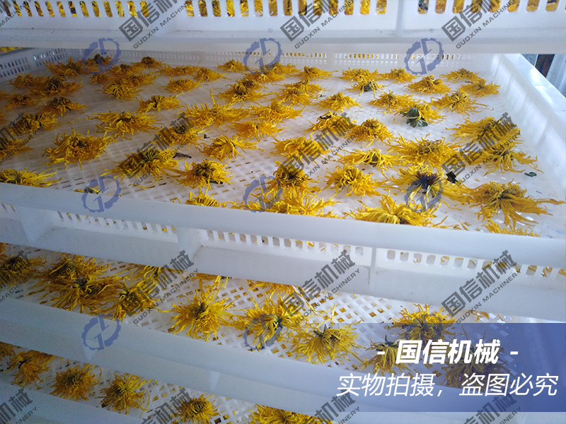 以空氣能熱泵烘干房為例,金絲皇菊烘干工藝步驟: