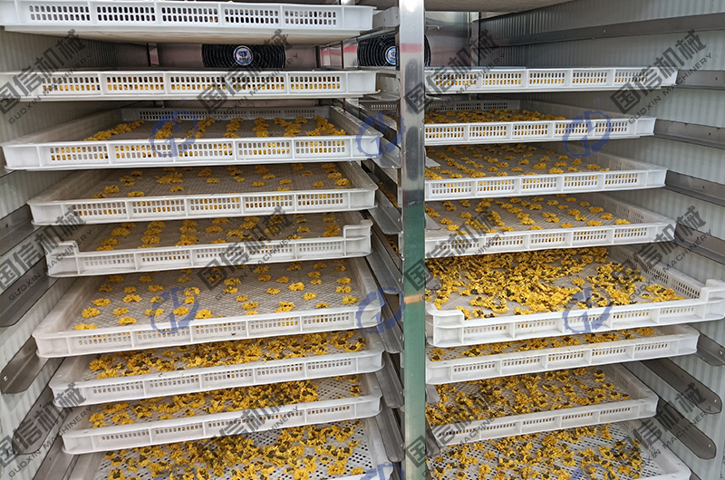 導讀:菊花烘干機已經(jīng)成為了菊花生產(chǎn)加工的重要設備,可對剛采摘的新鮮菊花進行快速高效的烘干加工,也可以對長期貯藏的菊花進行干燥除潮。菊花烘干房采用的是靜態(tài)烘干模式,通過熱源裝置,讓烘干房內(nèi)的溫度升高到制定值,對擺放在房內(nèi)的菊花進行干制。烘干房的智能化控制系統(tǒng),可以對溫度和濕度進行精準控制,以達到菊花烘干目的。