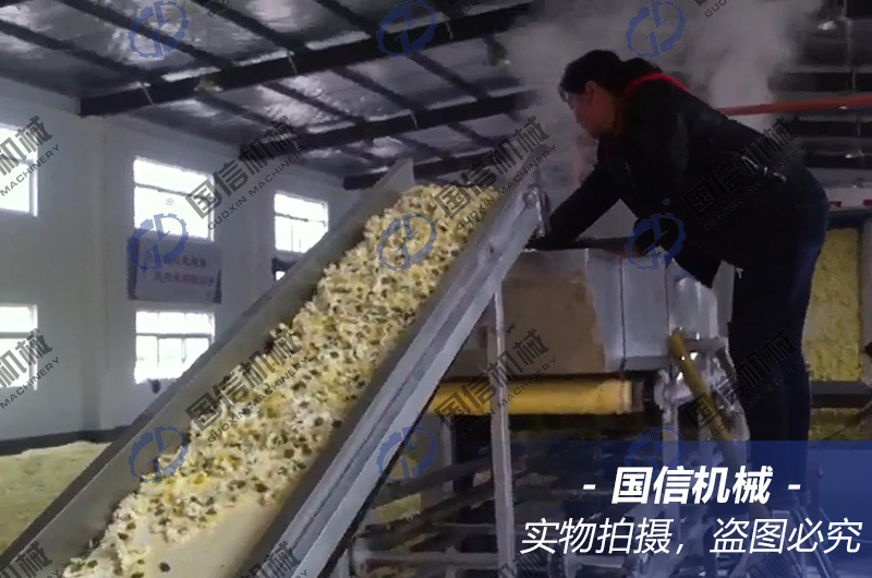 菊花殺青機具有殺青效率高、殺青后菊花色澤自然、口感好,設(shè)備操作簡單、工作過程中對環(huán)境無污染等特點。