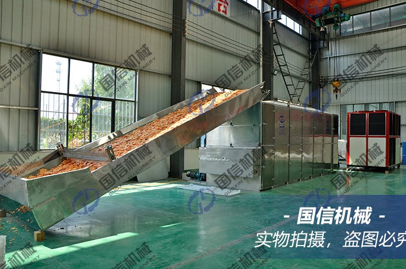 流水線空氣能紅薯片烘干的工藝如下: