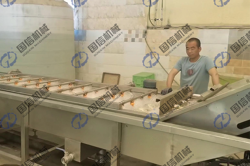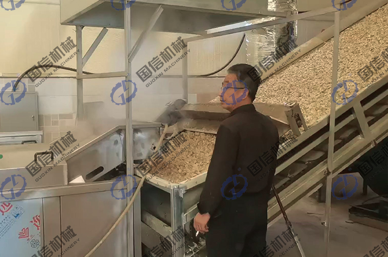 高溫煮燙:煮燙是干燥加工的關(guān)鍵環(huán)節(jié),是著色保質(zhì)的保障。高溫煮燙可在不銹鋼(預(yù)煮)漂燙殺青機(jī)中進(jìn)行,漂燙蒸煮機(jī)的蒸煮時(shí)間溫度都可以調(diào)節(jié),蒸煮過(guò)程中不需要人員操作,省工省力!百合分季的含淀粉不一樣,蒸煮時(shí)間也不一樣,煮燙的時(shí)間以原料略軟,掰斷鱗片時(shí)有清脆響聲,有較強(qiáng)彈性為度。 高溫煮燙的操作要掌握好,熱燙溫度和時(shí)間達(dá)不到,在干燥過(guò)程中就會(huì)氧化褐變;如果熱燙過(guò)度,鱗片煮爛,干燥后則鱗片容易破裂或形成魚鱗片,色澤加深,影響制品的外觀質(zhì)量。