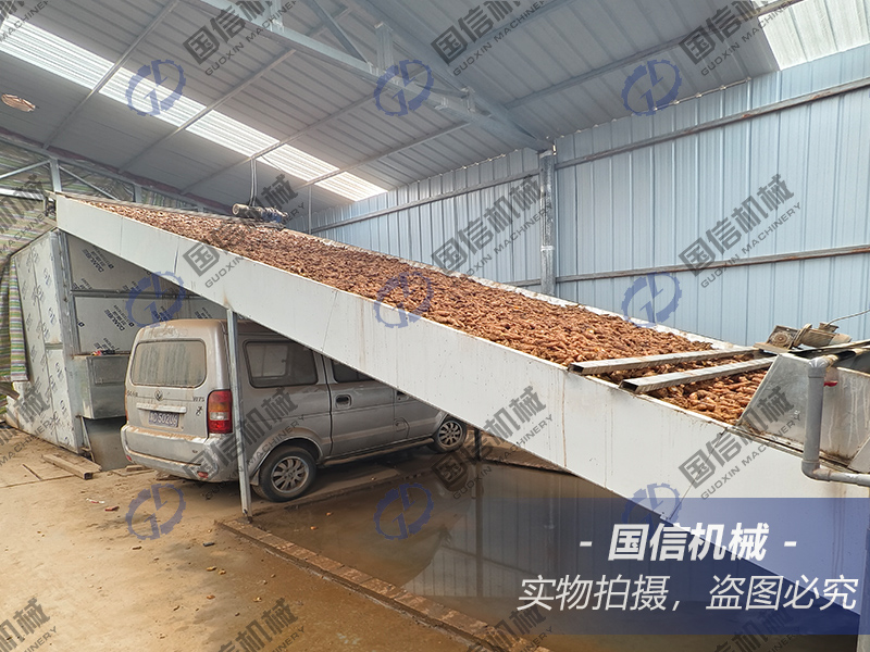 與土灶烘干和日曬干燥相比,采用網(wǎng)帶地黃烘干機(jī)是一種理想的干燥方法。其設(shè)備采用熱風(fēng)為干燥介質(zhì),濕物料之間連續(xù)接觸,使?jié)裎锪现兴乃蛛S熱擴(kuò)散,去除氣化和蒸發(fā),達(dá)到干燥的目的。地黃的烘干過(guò)程相對(duì)簡(jiǎn)單,只需要三個(gè)步驟就可以完成:
