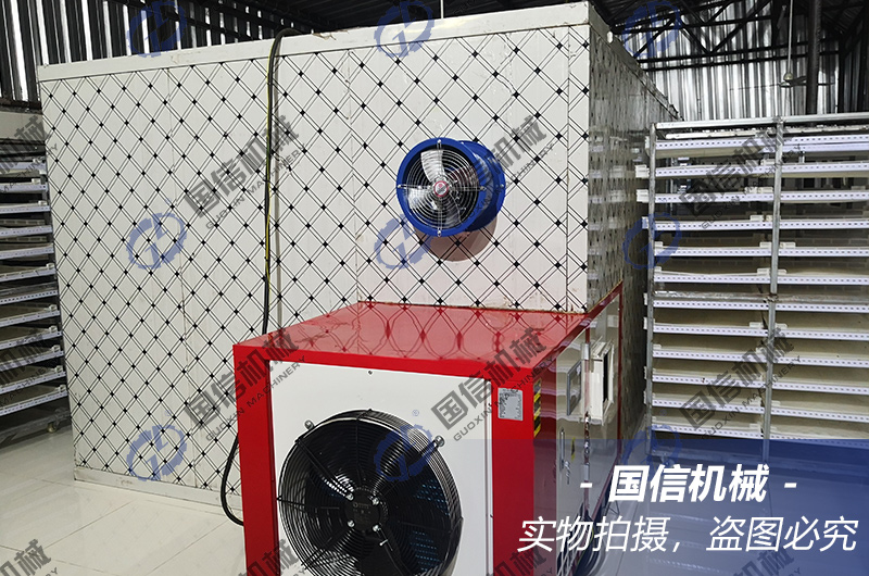 布基納法索客戶采購的是全自動(dòng)熱泵芒果烘干房,這是一種綠色環(huán)保、精準(zhǔn)智能的烘干設(shè)備。它是由提供穩(wěn)定熱源的空氣能熱泵做主機(jī),然后將熱量輸送至高保溫性能的聚氨酯保溫板組成的烘干房內(nèi)部,在烘干房內(nèi)部的循環(huán)風(fēng)機(jī)作用下,熱量會(huì)高效循環(huán)利用,將均勻擺放在托盤和推車上的芒果干片進(jìn)行烘干。
