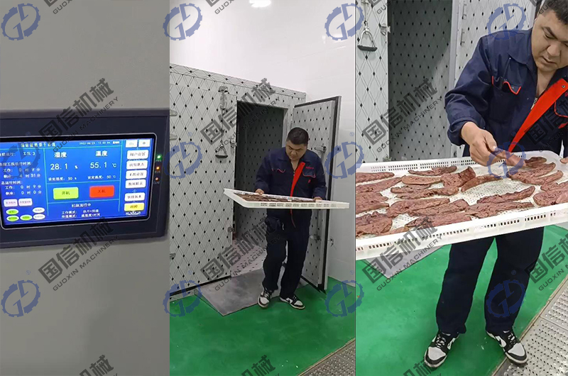 這是沈陽一位做寵物肉加工的客戶,大哥9月份定購的這臺空氣能熱泵烘干房,夫妻兩個(gè)開辦的寵物肉加工小作坊,先是把肉片平鋪到托盤上,然后推入到烘干房內(nèi),關(guān)好房門,最后一鍵設(shè)置好溫濕度就不用管了,烘干出來的效果大哥是非常滿意,連連稱攢!像這種做食品烘干加工我們建議使用空氣能熱泵烘干房,因?yàn)榭諝饽軣岜煤娓煞坑幸韵聝?yōu)勢